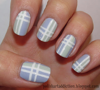 I realized while at work that my nails could easily be jazzed up with some plaid. What a great opportunity to do a quicky tutorial! These are super easy, I encourage all of you to try them. The first plaid nails I did were a few days ago on Sara, seen here.